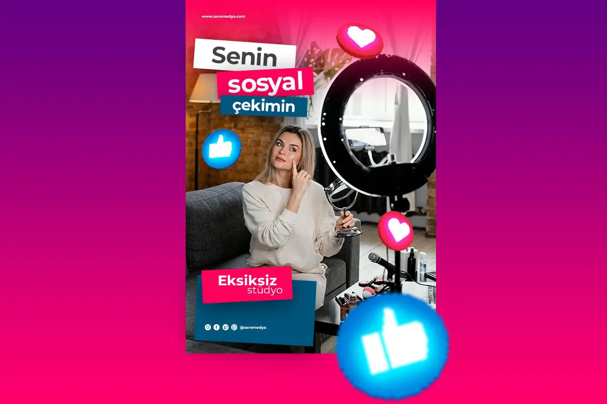 Asre Medya Dijital Reklam & Danışmanlık Ajansı olarak, sosyal medya dinamiklerine uygun, izlenebilirliği yüksek ve dönüşüm odaklı videolar üretiyoruz. Senaryo yazımından çekime, kurgu ve post-prodüksiyona kadar tüm süreci profesyonelce yönetiyor, markanızı dijitalde öne çıkarıyoruz.